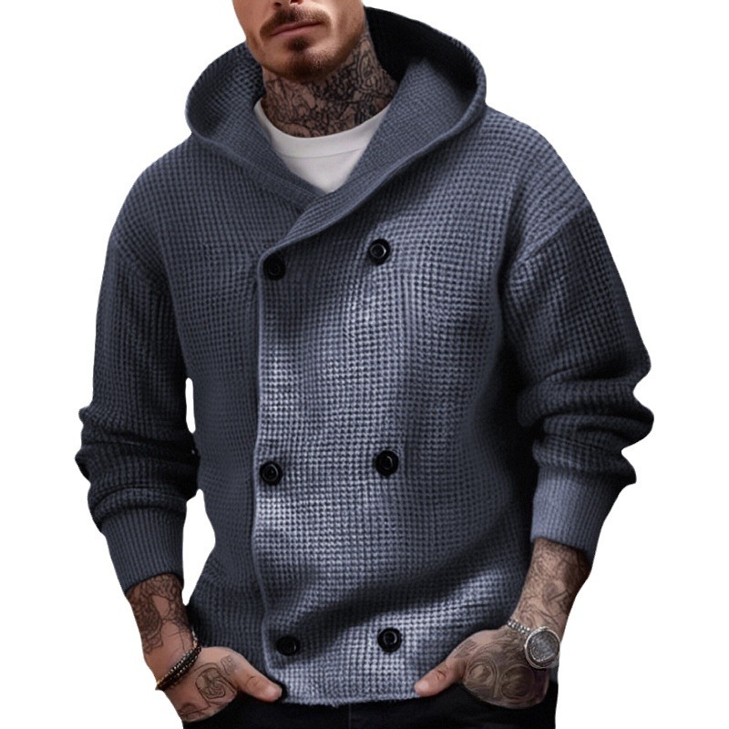 Uveng Uveng Men's Autumn And Winter Double Buckle Thick Hooded Knitted Jacket Casual Cardigan Sweater SY0061