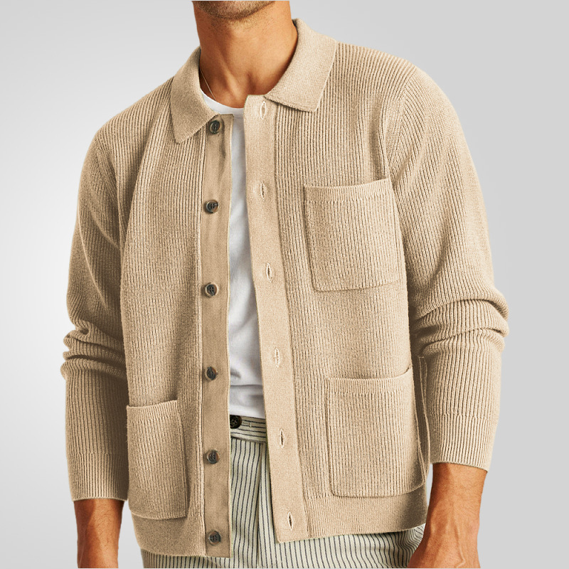 Uveng Uveng Men's Spring And Autumn High Density Knitted Shirt T-Shirt T-Shirt Collar Long Sleeve Sweater Jacket SY0016