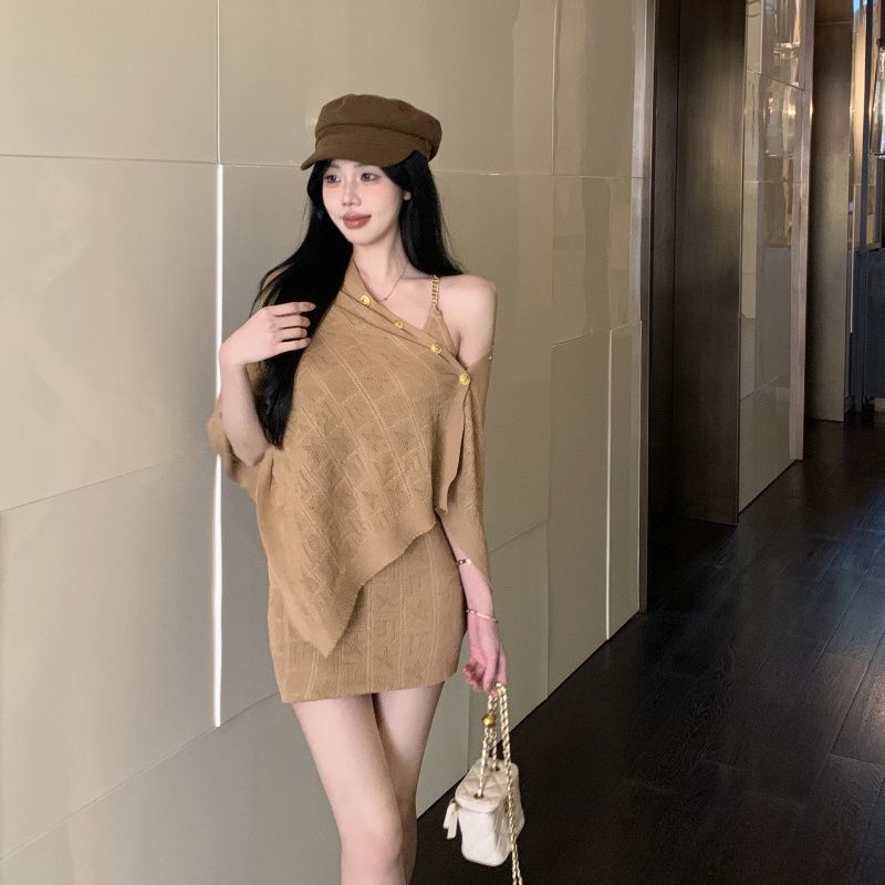 Uveng Uveng Mother Feels Casual Autumn New Beautiful Cardigan Dress Daily Simple Personality Multi-Wear Knitted Dress