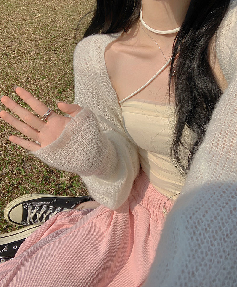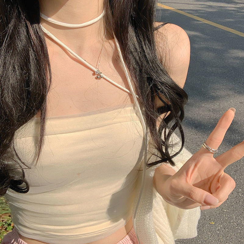 Uveng Uveng Neck Top Female Pure Lust Wind Hot Girl Tight Short Mesh Yarn Irregular Sling Vest Set On The Bottom Shirt Summer