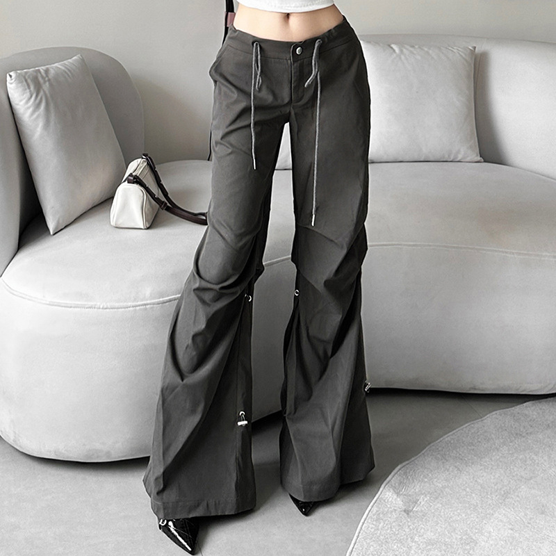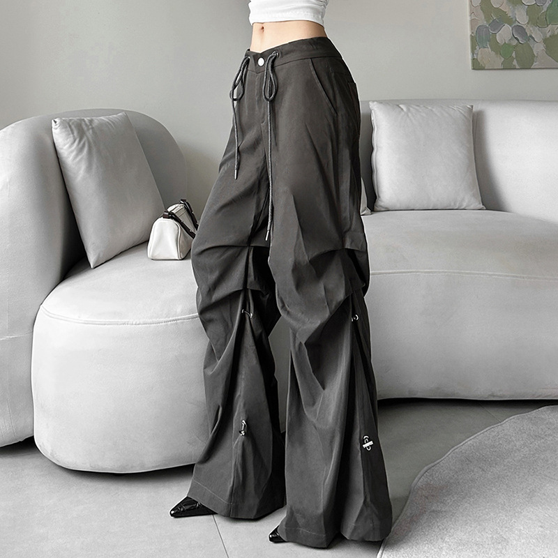 Uveng Uveng New 2023 Summer Women's Solid Color Loose Street Fashion High Waist Casual Straight Leg Wide-Leg Pants