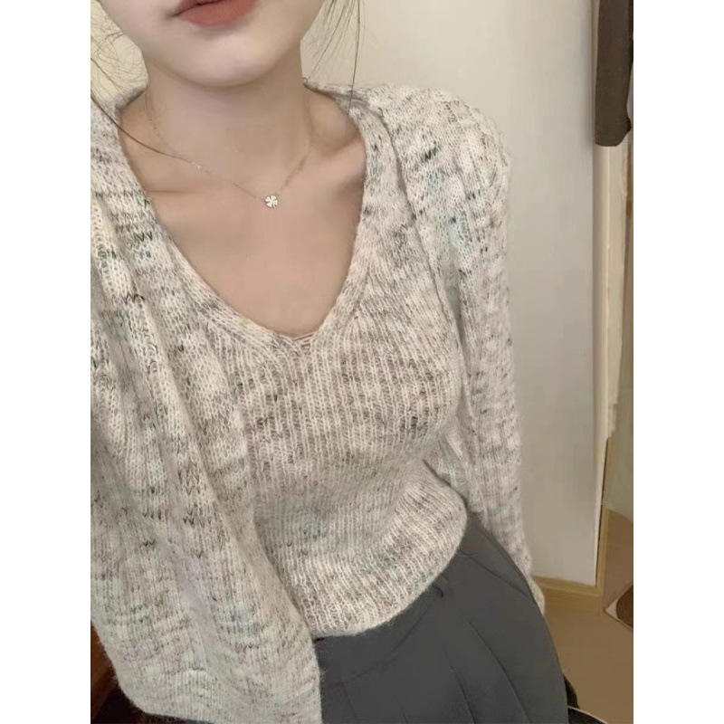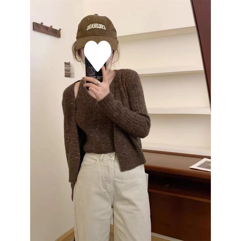 Uveng Uveng New Retro Color Yarn Sweater Coat Women Loose Knitted Slings Two Sets