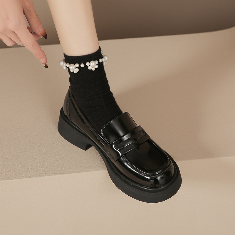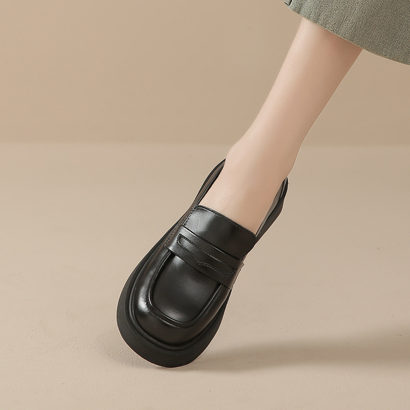 Uveng Uveng New Shallow Mouth British Style Student Single Shoes Korean Version Of College Style Happy Shoes With Skirt Small Leather Shoes Woman