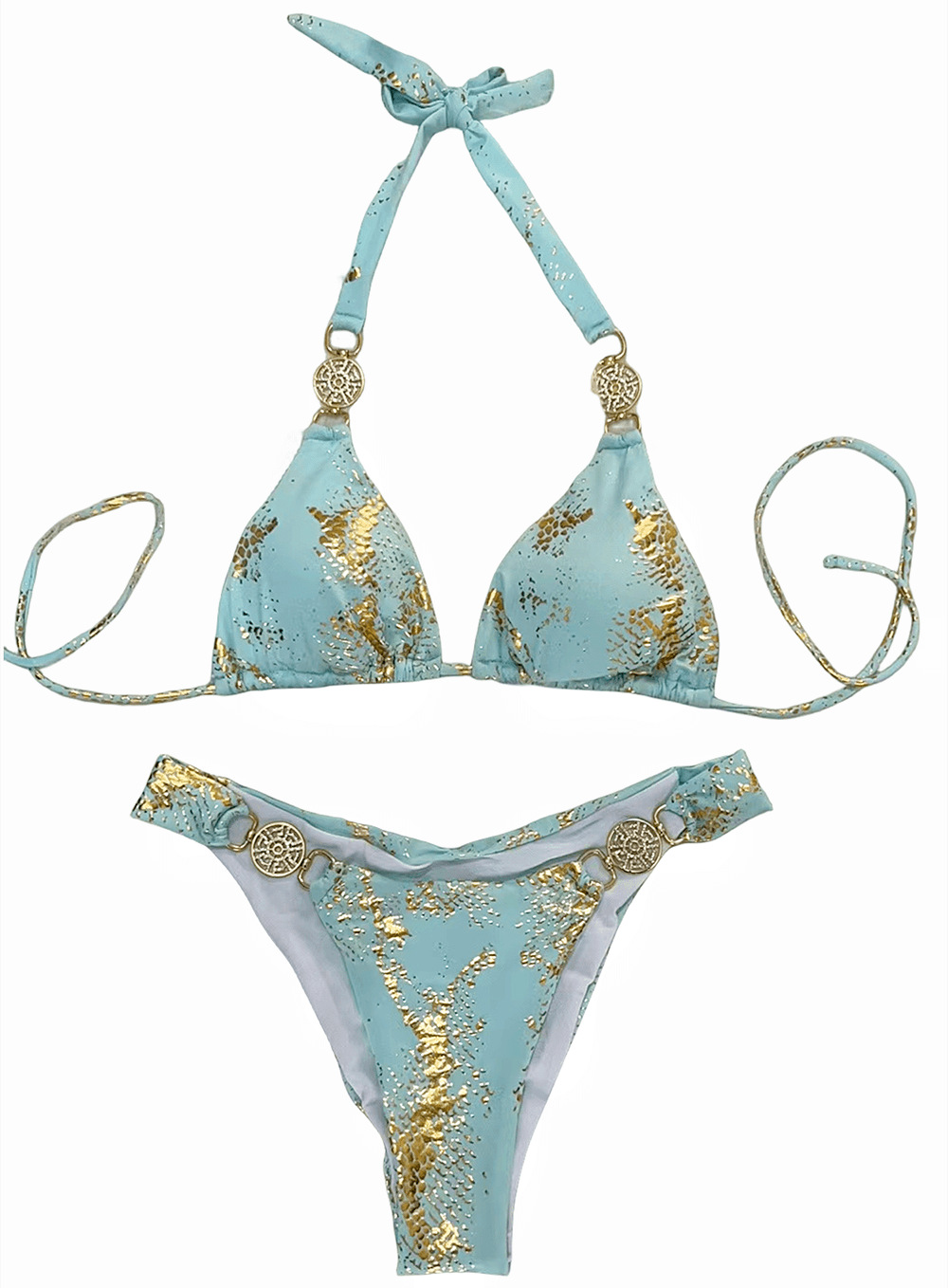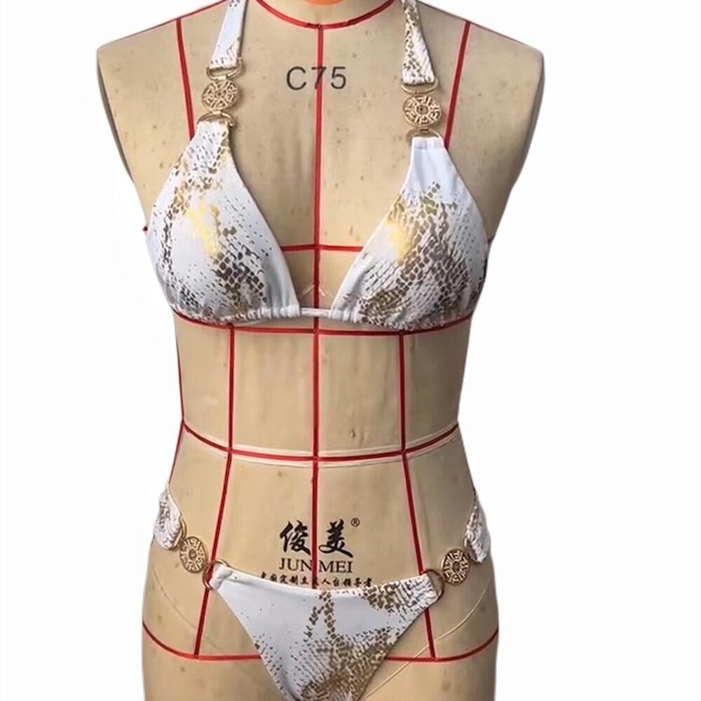 Uveng Uveng New Snake Perms Gold Bikini Crystal Diamond Metal Accessories Split Girls Holiday Swimsuit