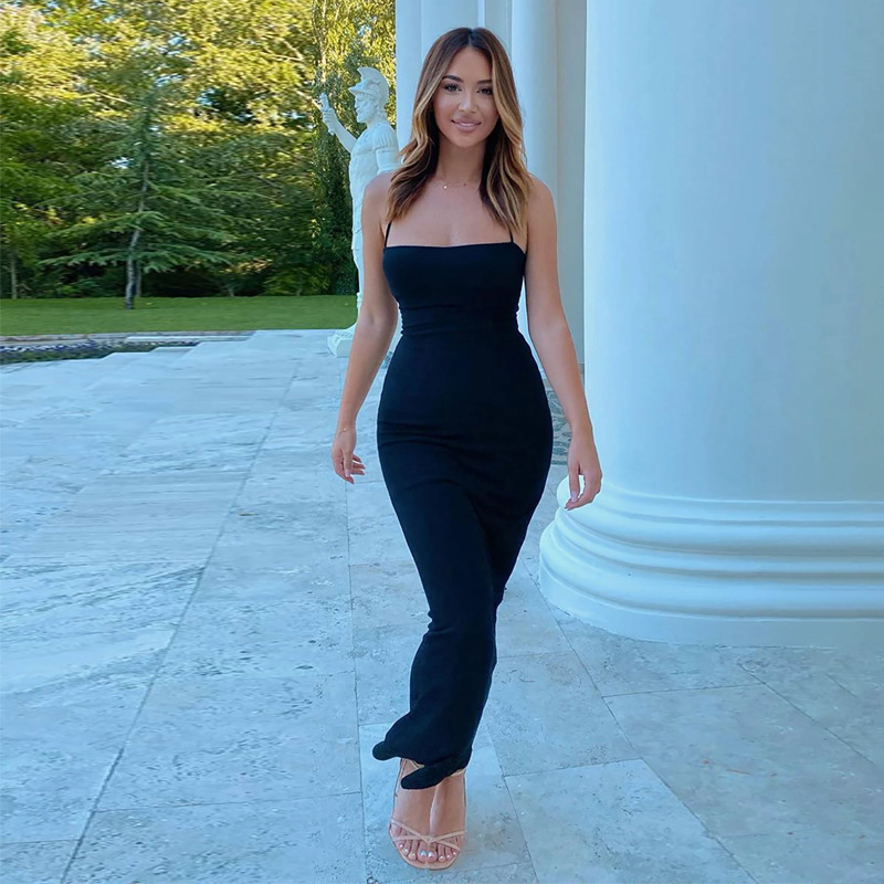 Uveng Uveng New Women's Summer Sexy Neck Back Tie Dress Solid Color Long Dress Children