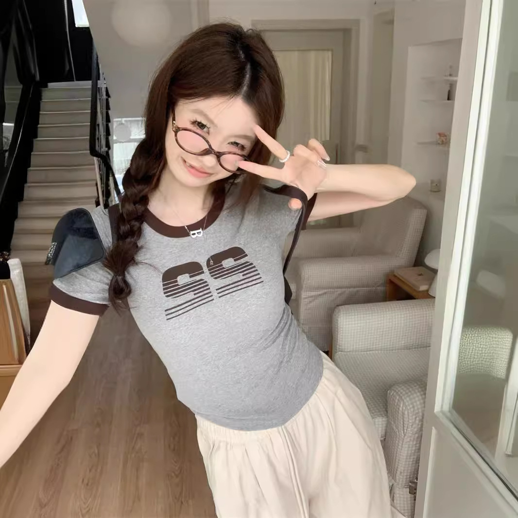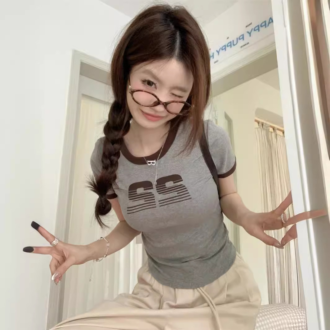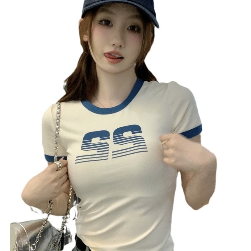 Uveng Uveng Print Short-Sleeved T-Shirt Women's Summer 2024 Hot Girls Retro Short Student Slim Top Fashion