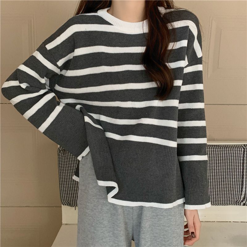 Uveng Uveng Renovation Striped Sweater Women's New Retro Mini-Designed Knitted T-Shirt Tide In Autumn