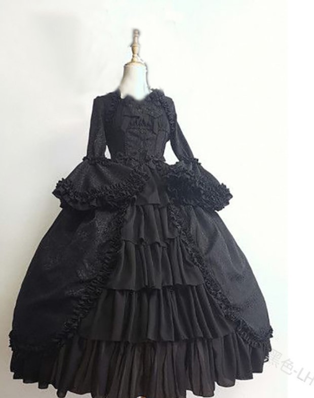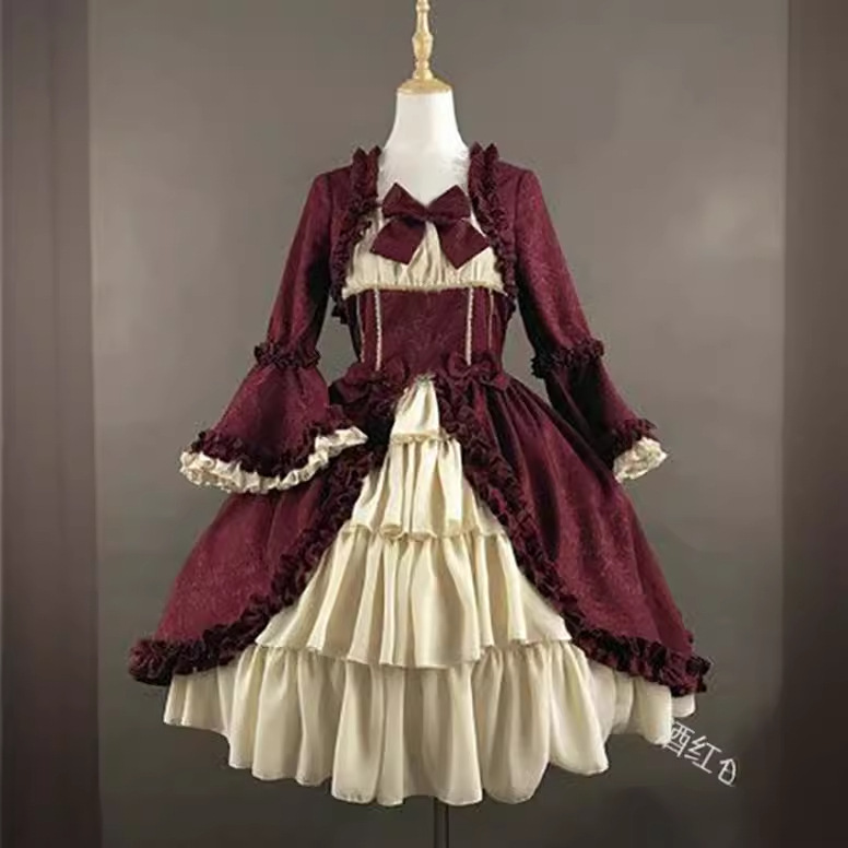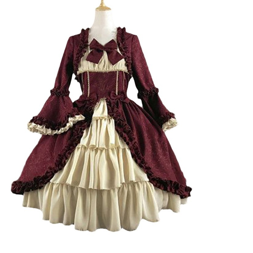 Uveng Uveng Retro Gothic Court Dress Side Collar Waist Thin Spliced Bow Design Ladies Dress Dress