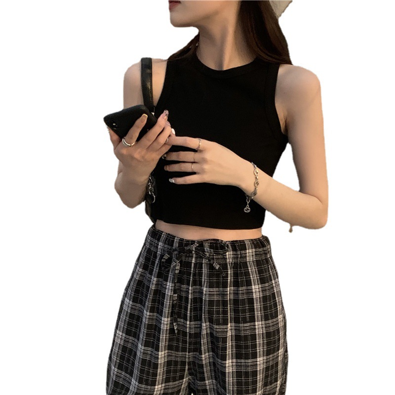 Uveng Uveng Round Collar Shows Thin Crop Short Money Wear Vest Summer 2024 New Hot Girl Sling Top Design Sense