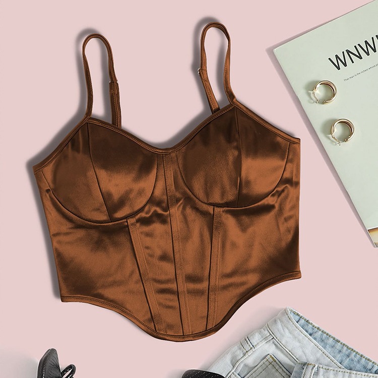 Uveng Uveng Satin Show Chest Bundle Waist Sexy Sling Show Back Vest Female Summer Small Top Female