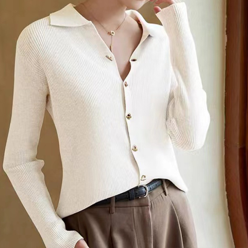 Uveng Uveng Sense Of The Small V-Neck Long-Sleeved Knitted Shirt Women's Autumn And Winter New Half-Opened Collared Blouse Bottom Sweater