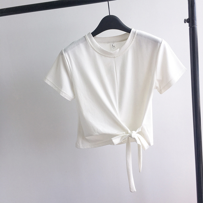 Uveng Uveng Solid Color T-Shirt Female 2024 Summer Wear Korean Version Of The Strap Careful Machine Exposed Umbilical Students Short Sleeve Shirt Repair Body