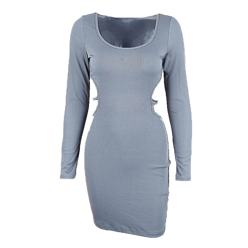 Uveng Uveng Spring 2023 New Sexy V-Neck Back Hollow Strap Waist Long Sleeve Women's Dress Pack Hip Skirt