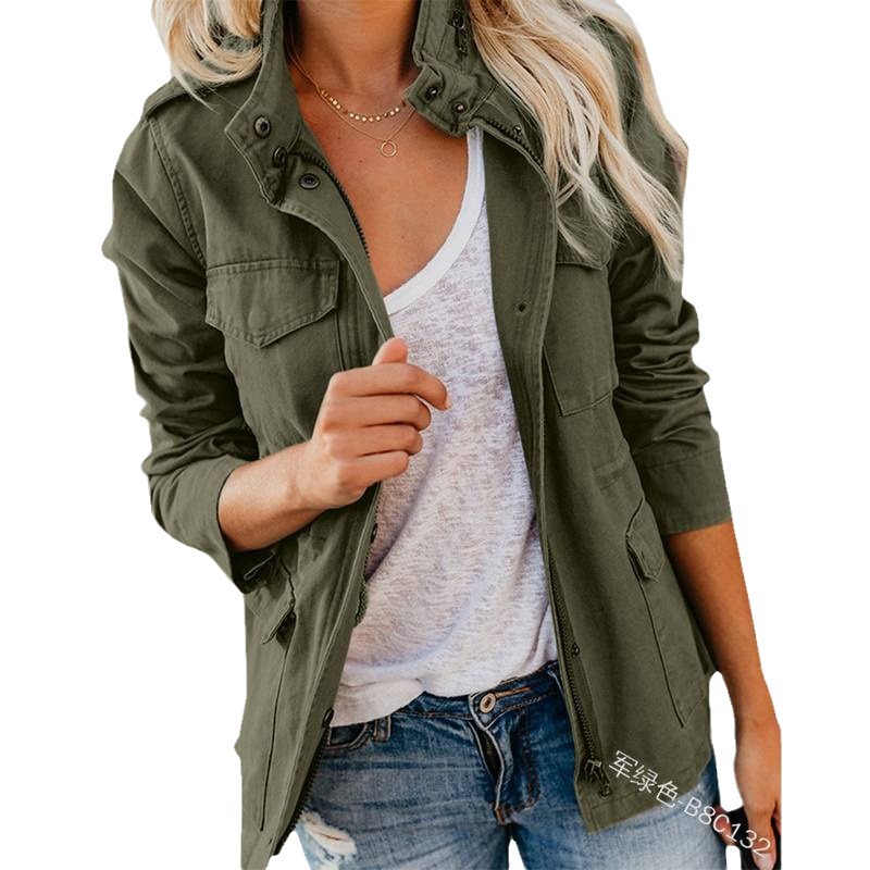 Uveng Uveng Spring And Autumn Self-Body Fashion Street Trendy Solid Color Loose Korean Version Zipper Multi-Pocket Jacket Women's Coat