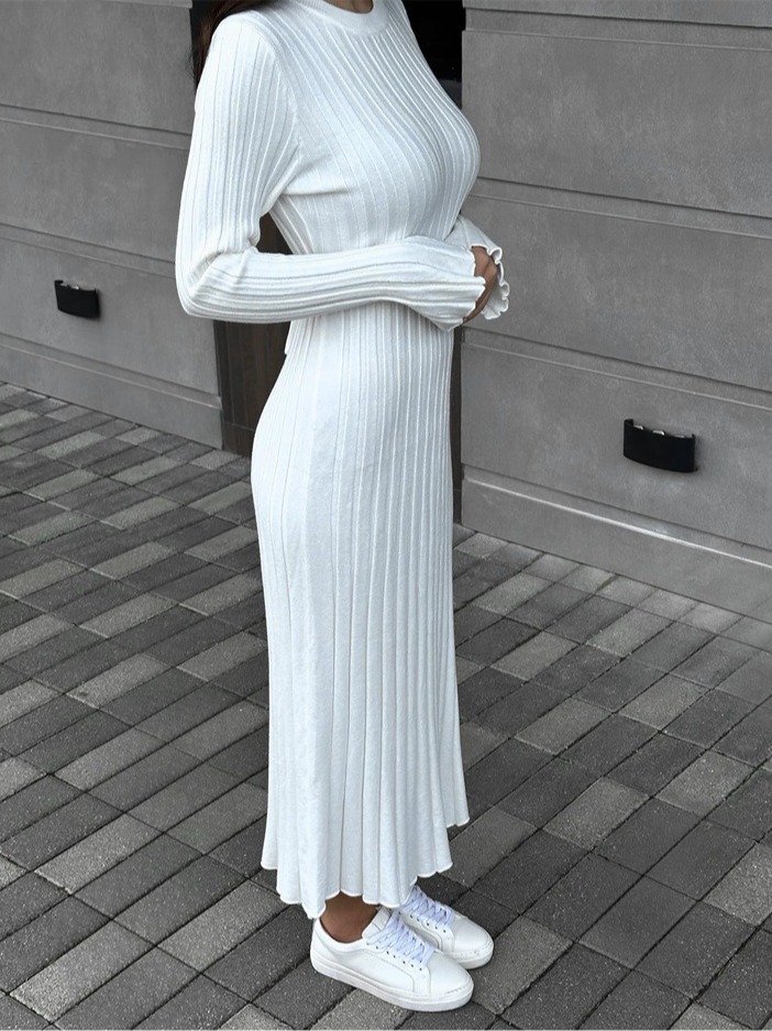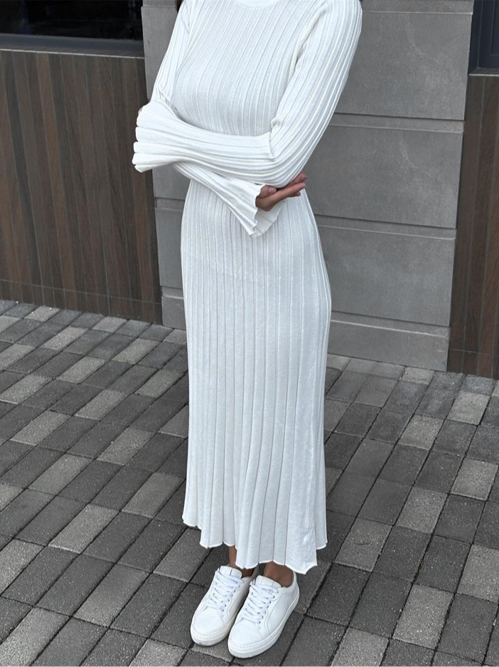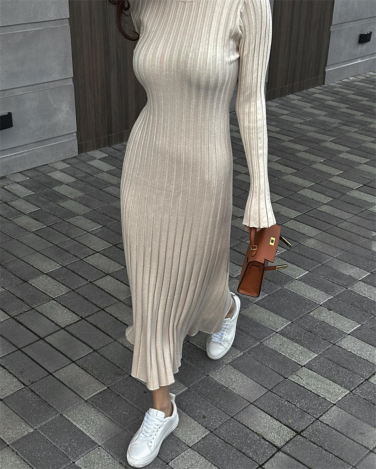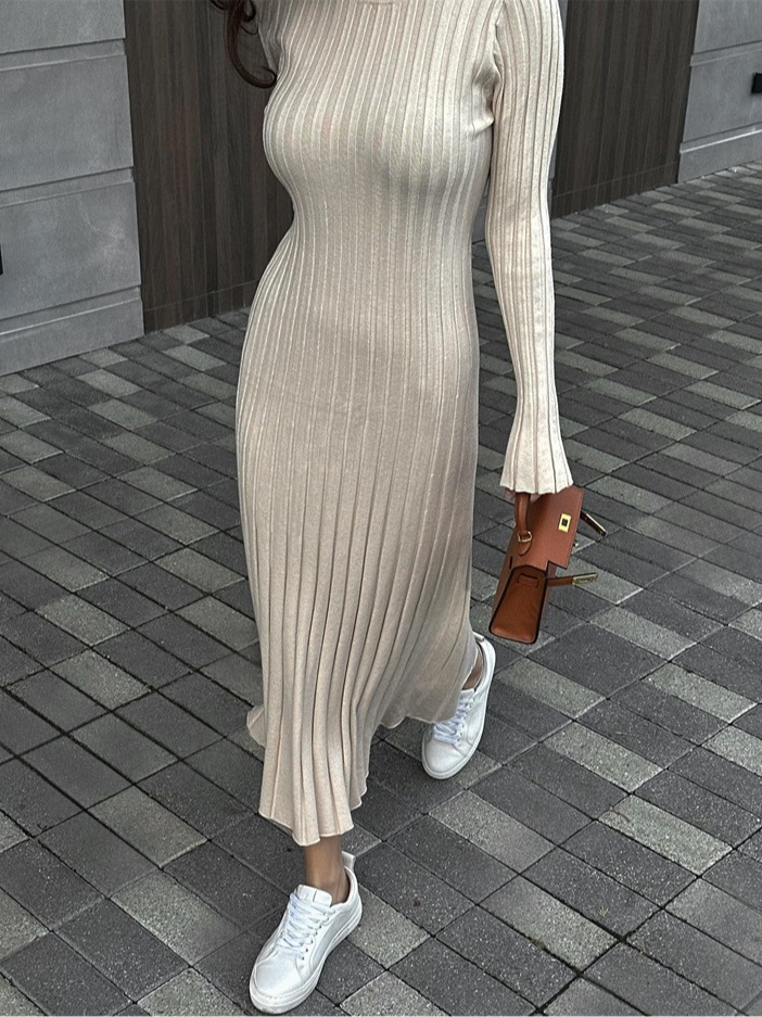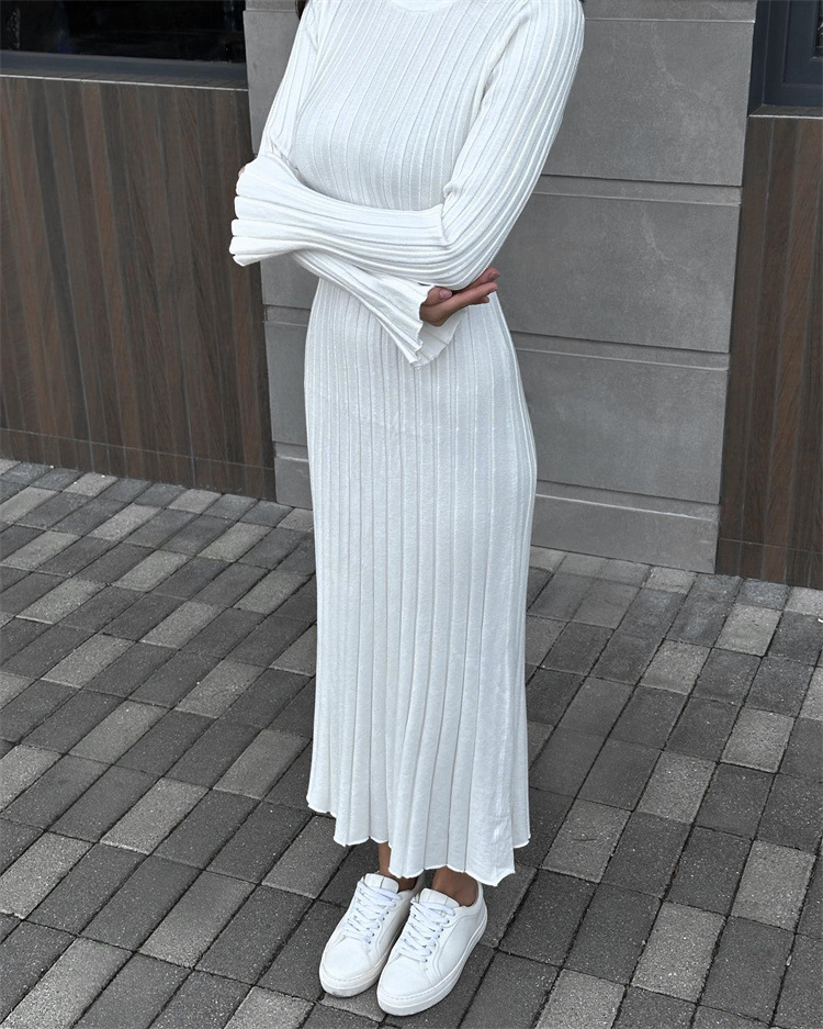 Uveng Uveng Spring Knitting Bottom Long Sleeve Long Dress Women's Round Neck Solid Color Strap High Waist Tight Dress