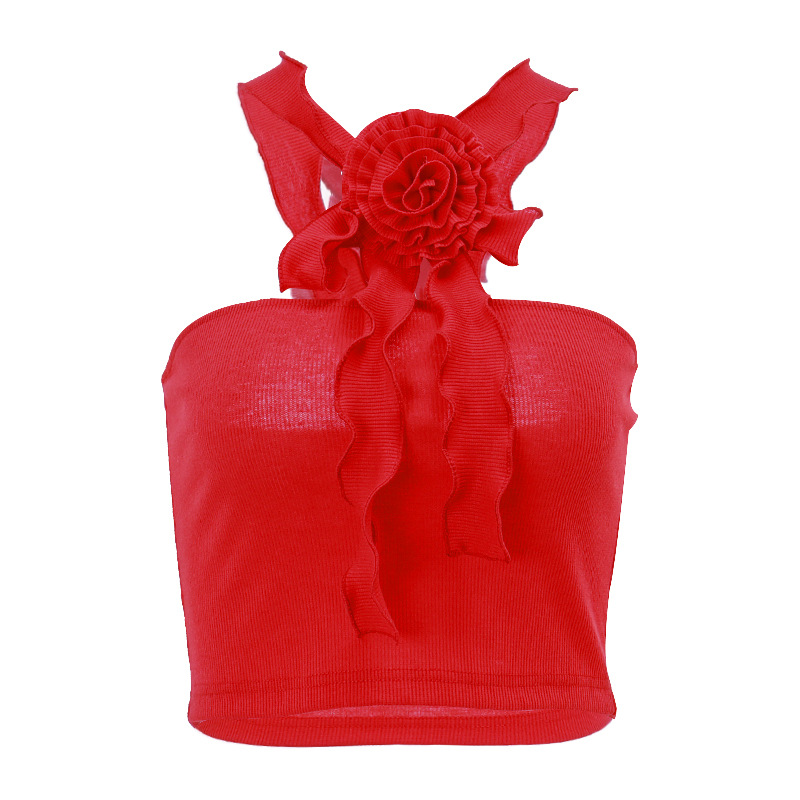 Uveng Uveng Spring New Fashion Sexy French Three-Dimensional Flower Ribbon Hanging Neck Stitching Wipe Chest Vest Woman