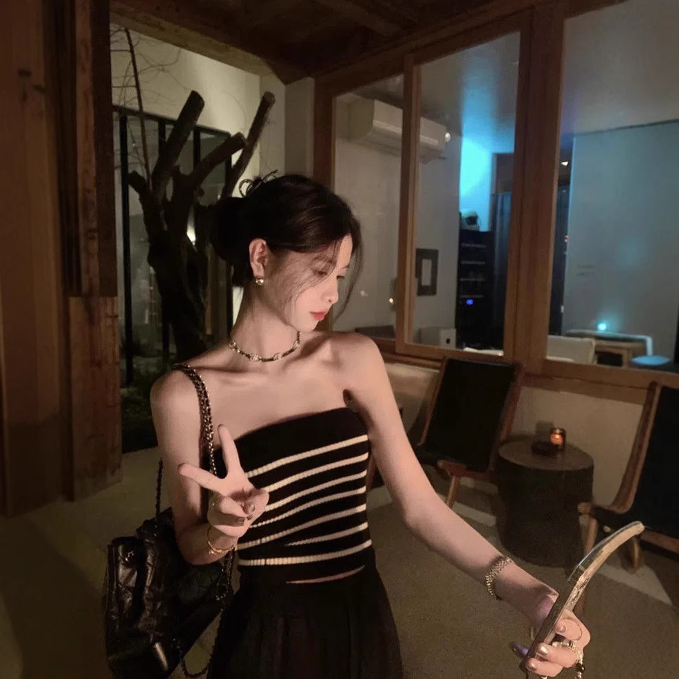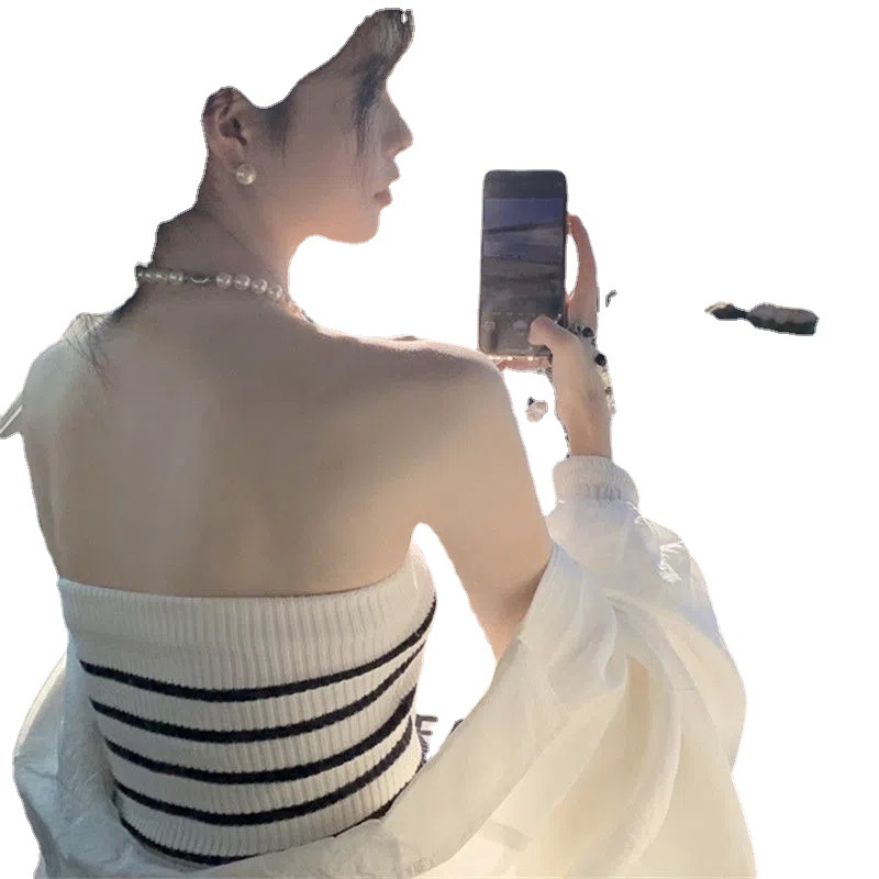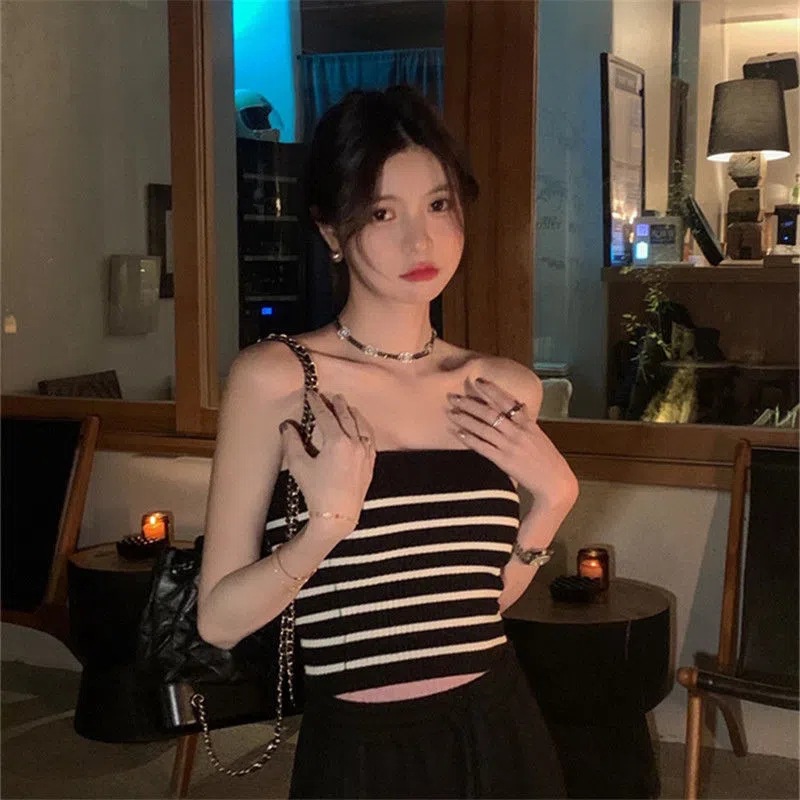 Uveng Uveng Straps With Breasts Outside The Back Wear Hottie Slings Design Feel Summer Striped Knitted Ice Silk Vest Woman