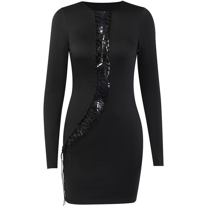 Uveng Uveng Street Fashion Sexy Slim Bag Hip Personality Pure Color Short Money Tie Hot Girl Dress Female