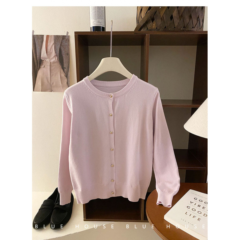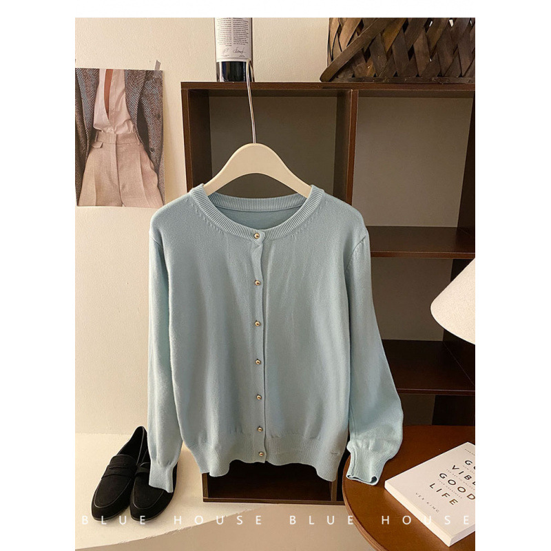Uveng Uveng Style Gentle Retro Small Gold Button Net Version Long-Sleeved Knitted Shirt Women Autumn Collar Soft Glutinous Sweater Coat