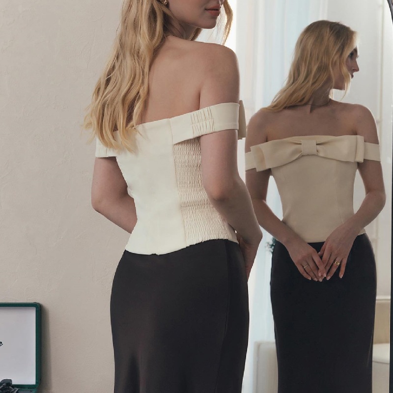 Uveng Uveng Summer New Fashion Sexy French Pure Desire Collar Bow Decoration Short Top