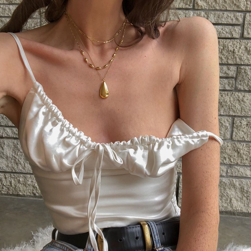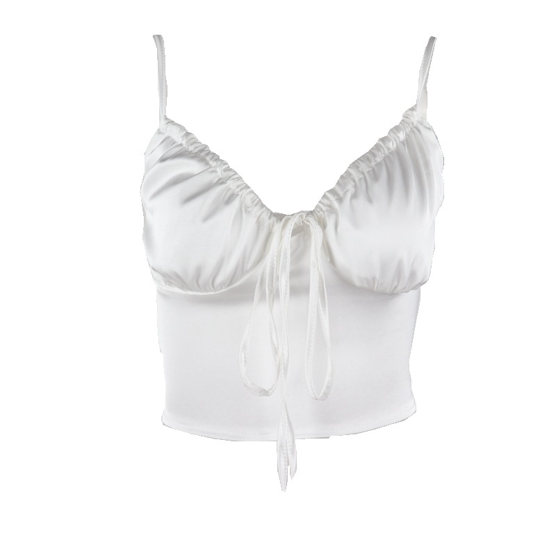 Uveng Uveng Summer New Fashion Sexy Hot Girl Pure Desire Wind V Tie Pure Color Silk Bright Small Vest