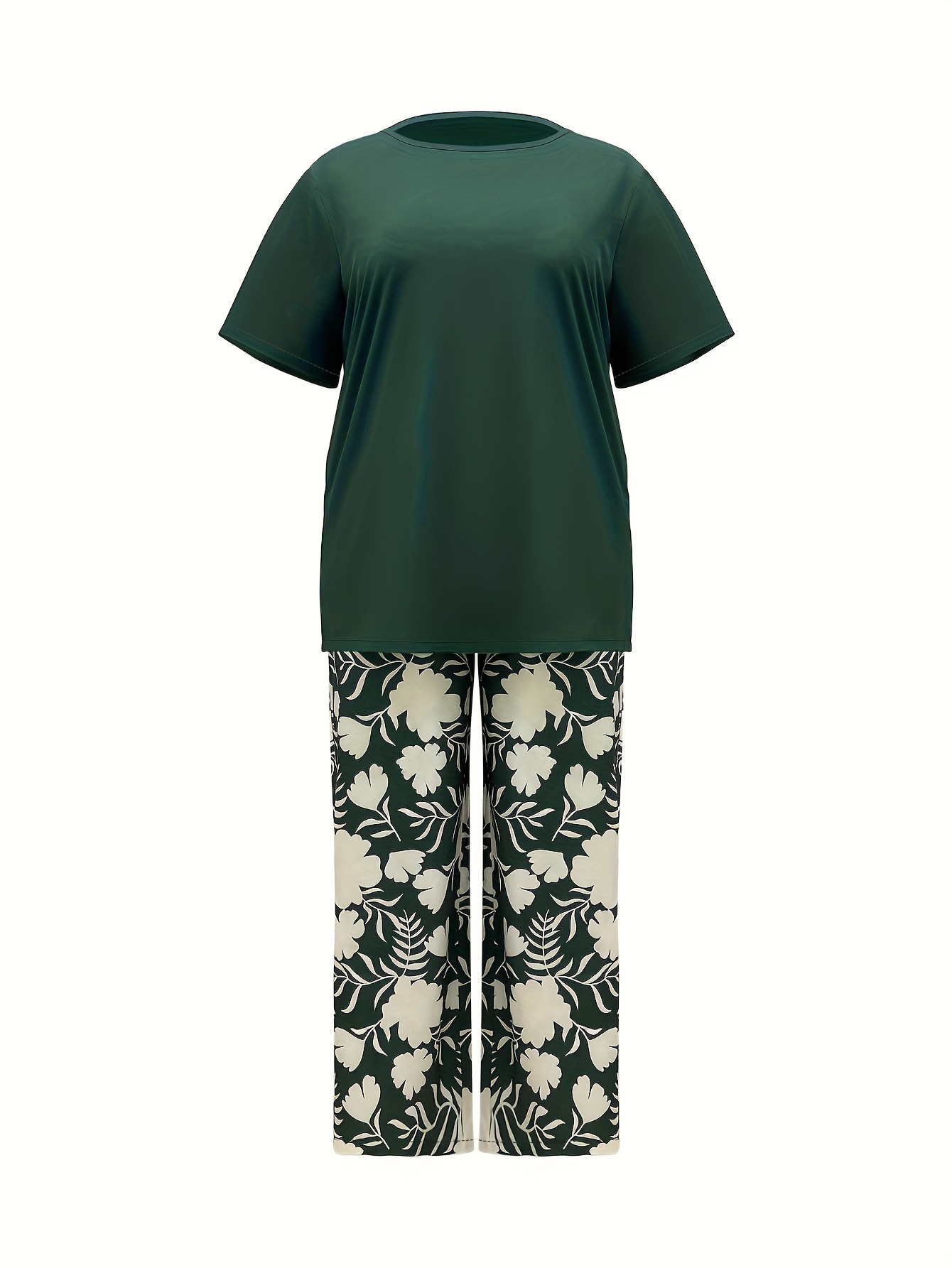Uveng Uveng Summer New Large-Size Women's Two-Set Printed Short-Sleeved Set