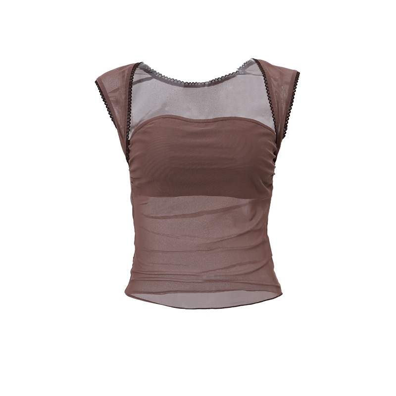 Uveng Uveng Summer New Sexy Hot Girl Pure Desire Square Get Net Gauze Perspective Short Sleeveless Vest Woman