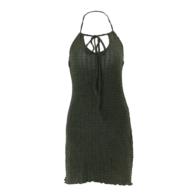 Uveng Uveng Summer New Women's Dress Sweet Light Ripe Wind Sexy Dew Back Hanging Neck High Waist Slim Bag Buttock Skirt