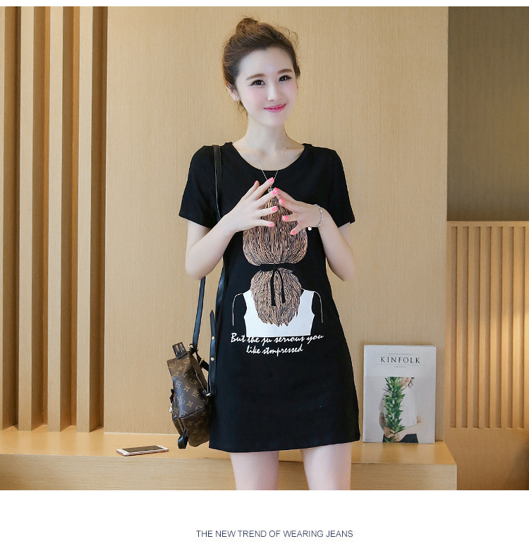 Uveng Uveng Summer New Women's Korean Dress Print Women's Medium Long Short-Sleeved T-Shirt Girl Top Bottom