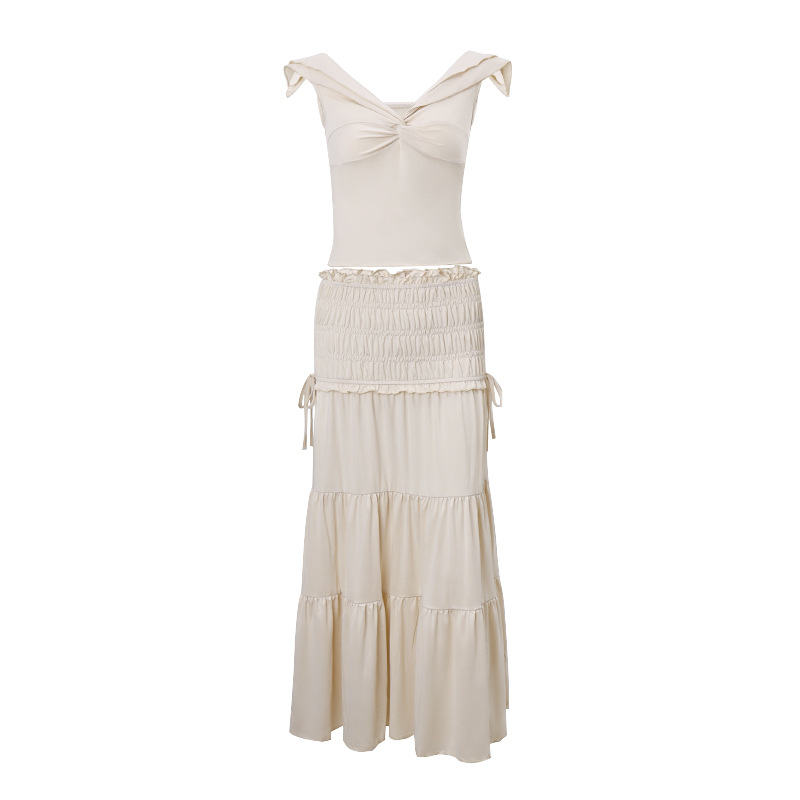 Uveng Uveng Summer New Women's Sexy Crop Low Breast Short Vest French Temperament Pleated Skirt Suit Female