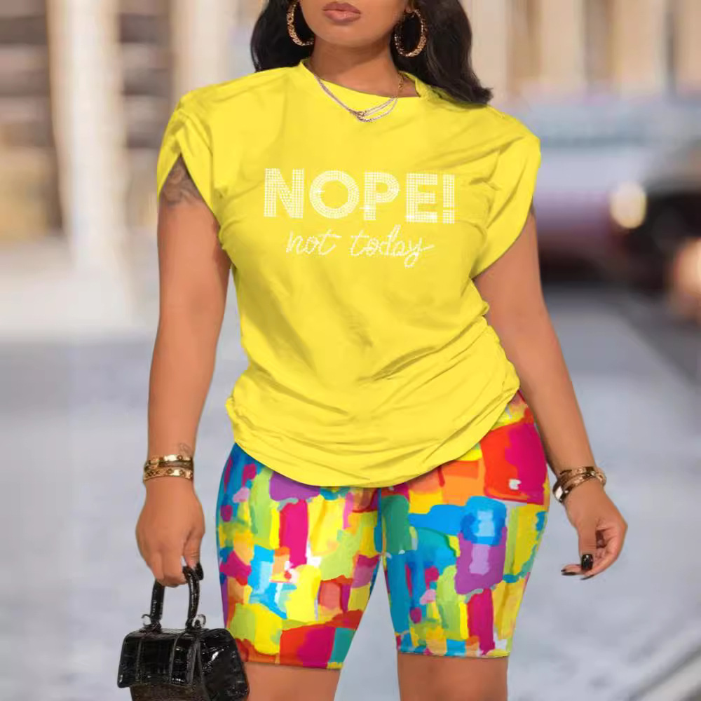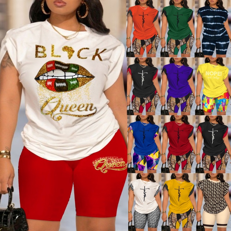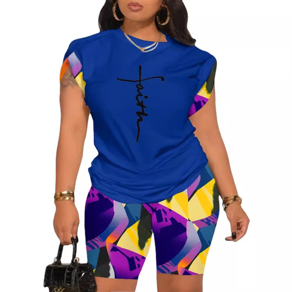 Uveng Uveng Summer New Women's Temperament Digital Printing Round-Neck Short-Sleeved Set
