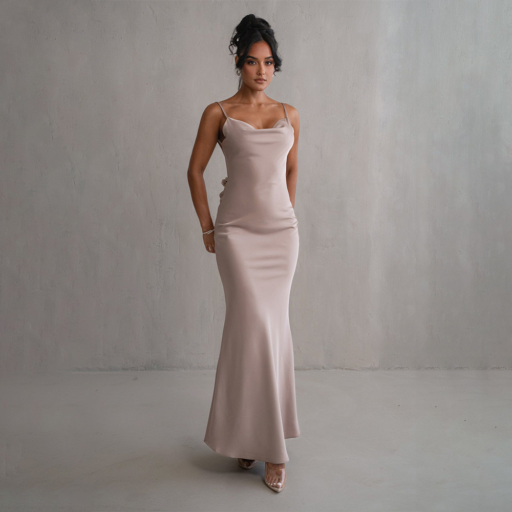 Uveng Uveng Summer Satin Temperament Condole Back Sexy Slim Evening Dress Woman