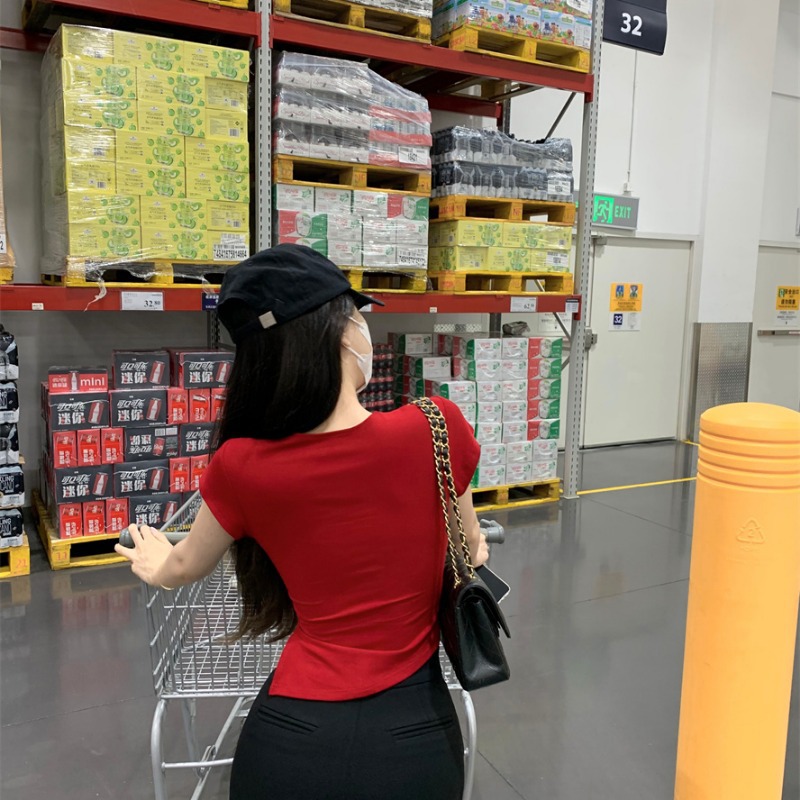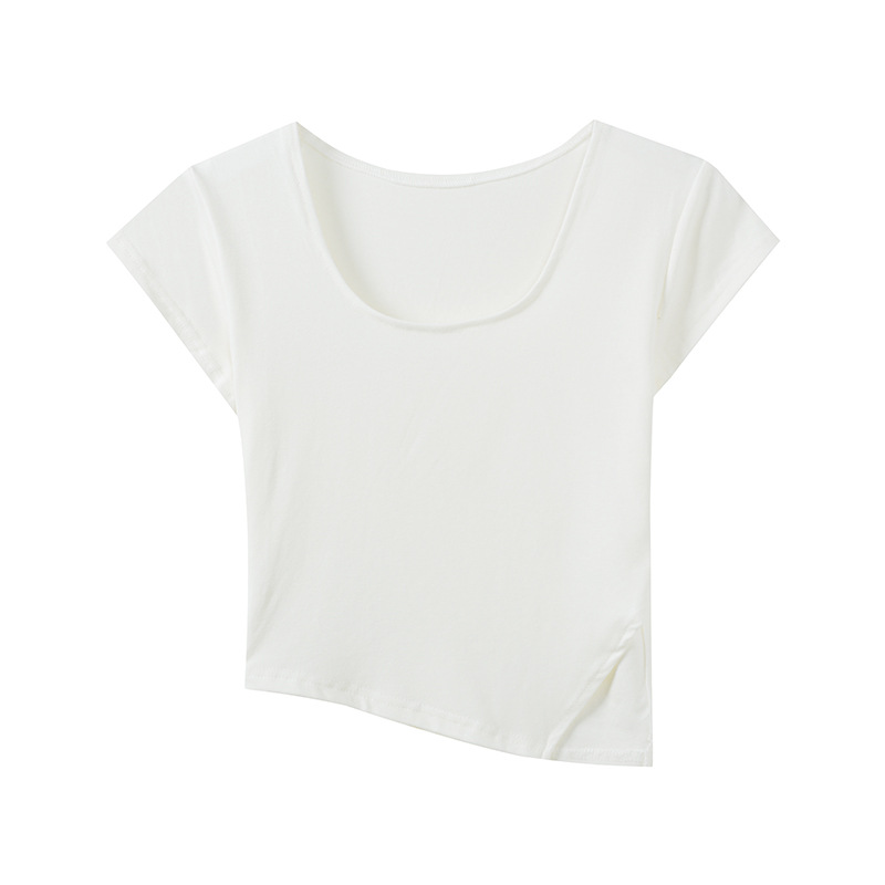 Uveng Uveng Summer Square Collar Short Slim T-Shirt Bottom Irregular Hot Girl With A Female Slit Short-Sleeved Shirt To Look Slim