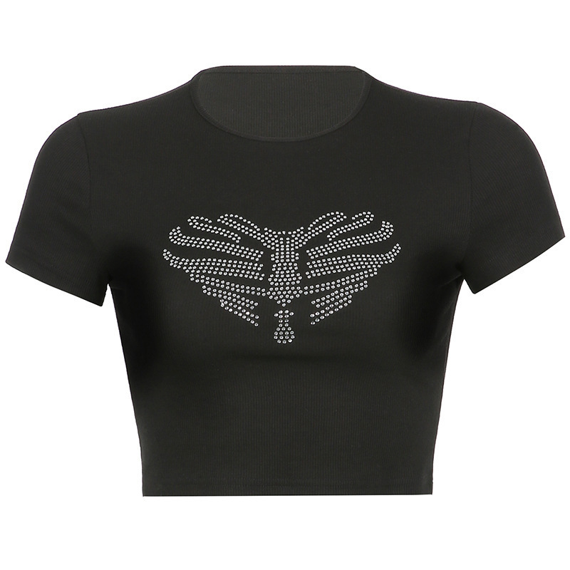Uveng Uveng Summer Sternum Love Hot Drill Women's Jacket Street Trend Slim Crop T-Shirt Women