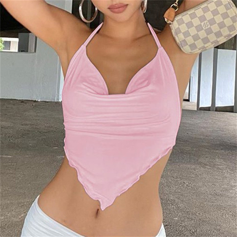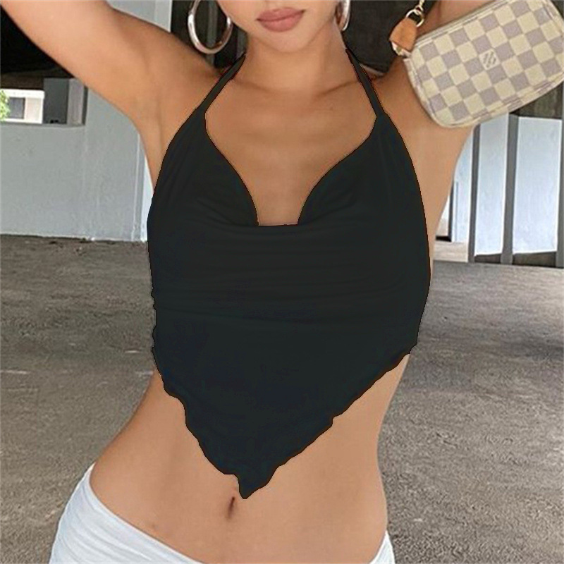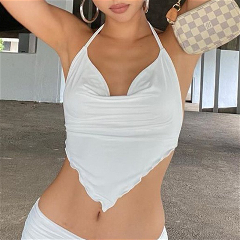 Uveng Uveng Summer Women's Dress Solid Color Dew Back Tie Hanging Neck Diamond Wave Belly Pocket Skirt