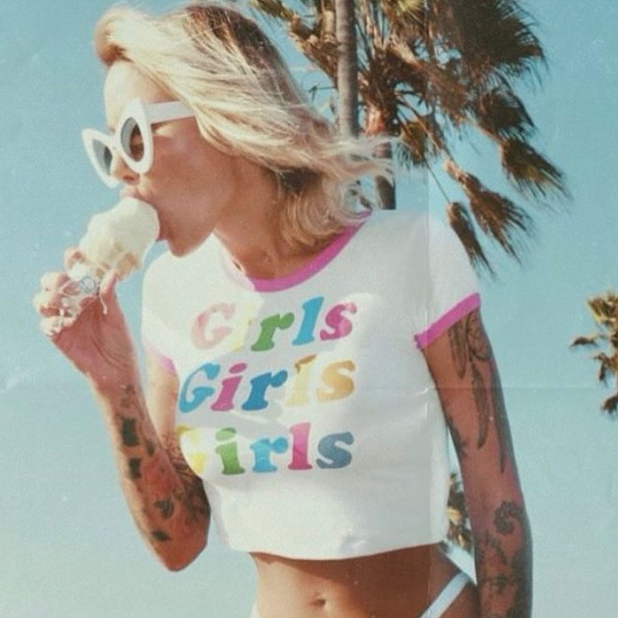 Uveng Uveng Summer Women's Ins Slim Letter Print Round Collar Short T-Shirt Women