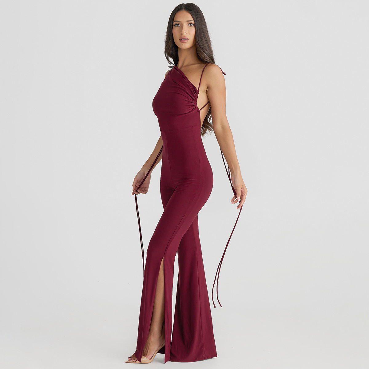 Uveng Uveng Summer Women's Wear Personality Street Back Pleated Slit Slim Strap Jumpsuit Woman