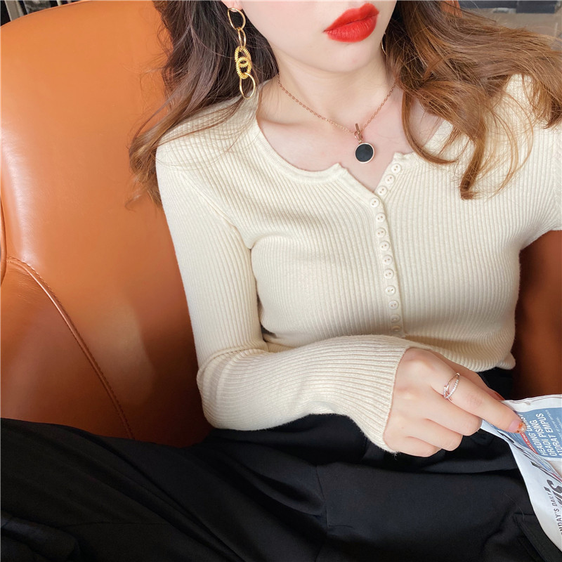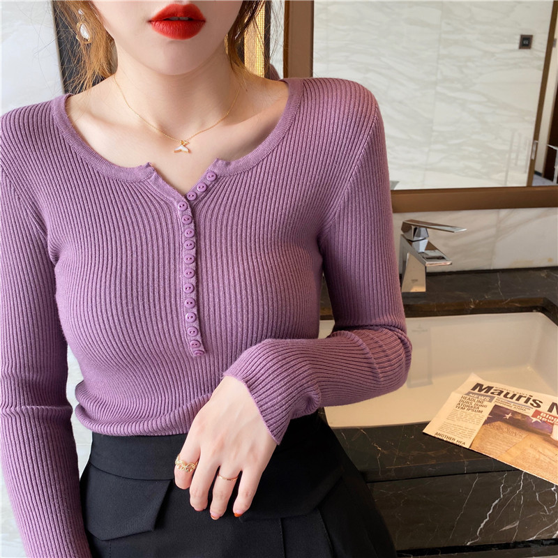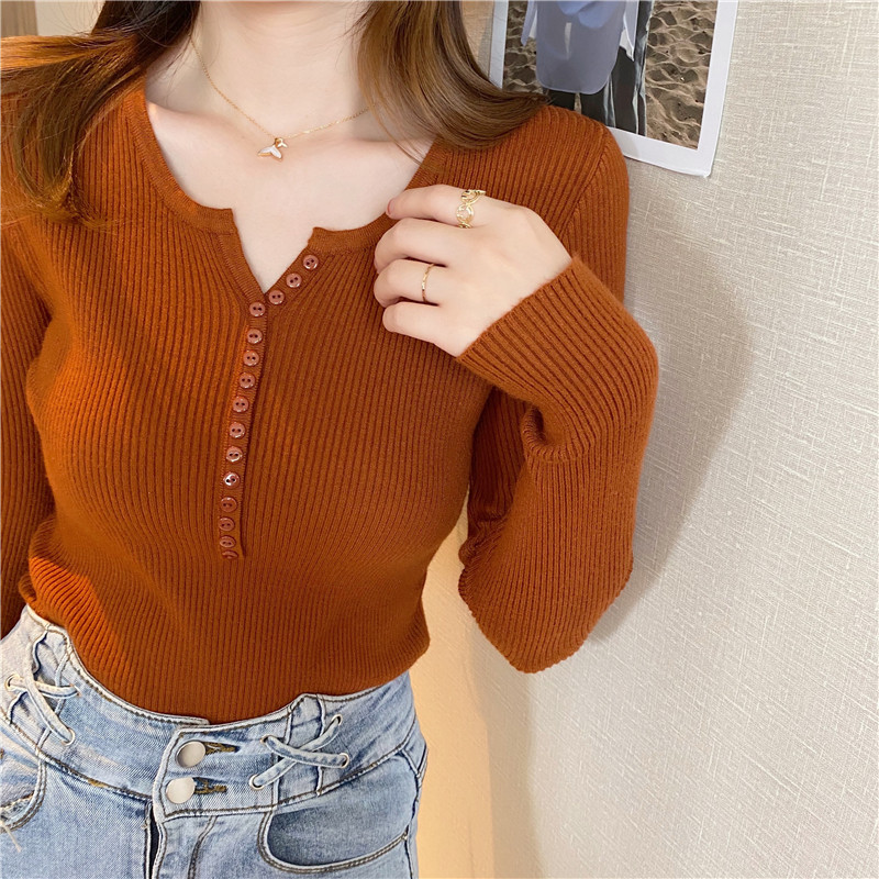 Uveng Uveng Sweater Women's Autumn And Winter Under The Bottom Shirt V Collar 2024 New Burst Long-Sleeved Black Tight Coat