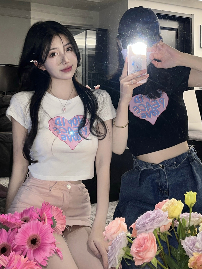 Uveng Uveng T-Shirt Girl 2023 Summer New Ins Trendy Sweet Hot Girl Print Design Sense Short Slim Student Top