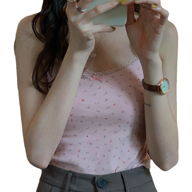 Uveng Uveng The United States Back Vest Net Red Fold Wear Short Floral Lace Small Sling Ins Super Hot Girl Student Jacket Female