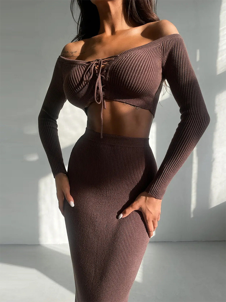 Uveng Uveng Tight Knitted Set Autumn/Winter 2023 New Women's Long-Sleeved Sweater Skirt Two-Set