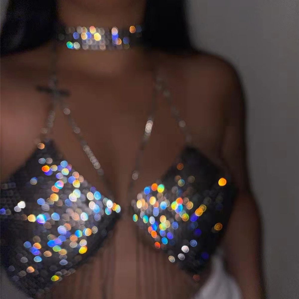 Uveng Uveng Type Sequins Slim Short Money Inside The Sling Type Anti-Light Black Small Vest DYJ2048