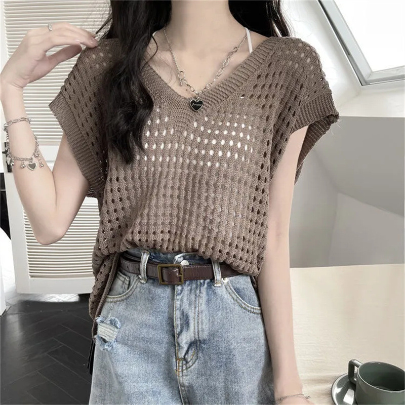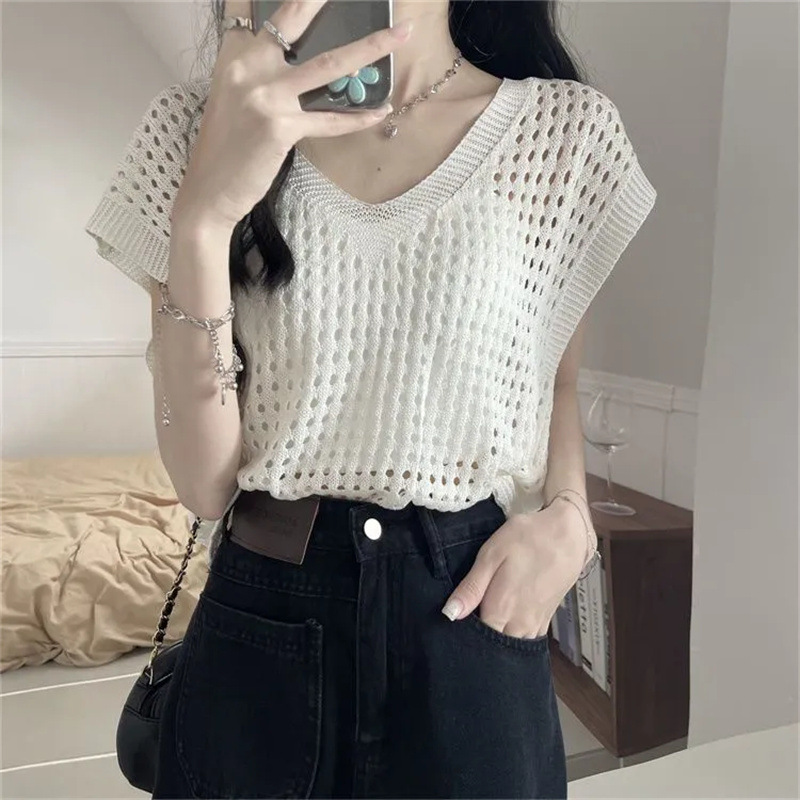 Uveng Uveng V-Necked Knitted Jersey Women's Thin Summer Design Sense Small Loose Thin Vest Outside On The Coat