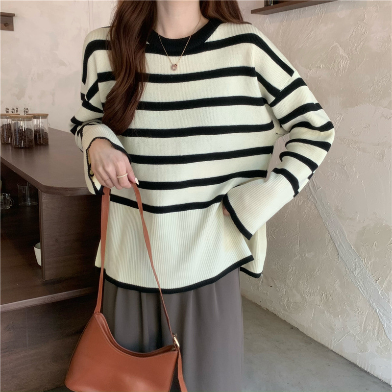 Uveng Uveng Version Of Striped Knitted Women In The Spring Of 2024 New Retro Lazy Wind Wearing Soft Languid Cover Loose Top Tide