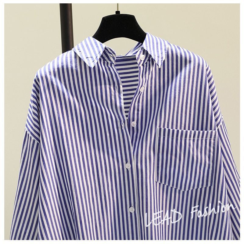 Uveng Uveng Vertical Stripe Medium Long Shirt Dress Women 2025 Spring And Autumn New Han Fan Art BF Style Casual Shirt