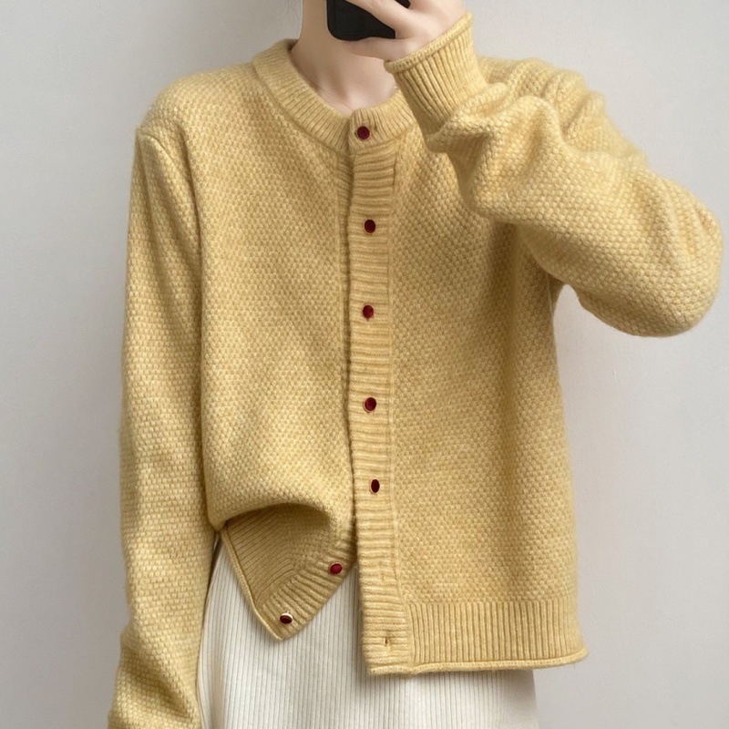 Uveng Uveng Wind Round-Neck Knitted Sweater Coat Women's Spring And Autumn Design Small Knitted Cardigan Small Bottom Top