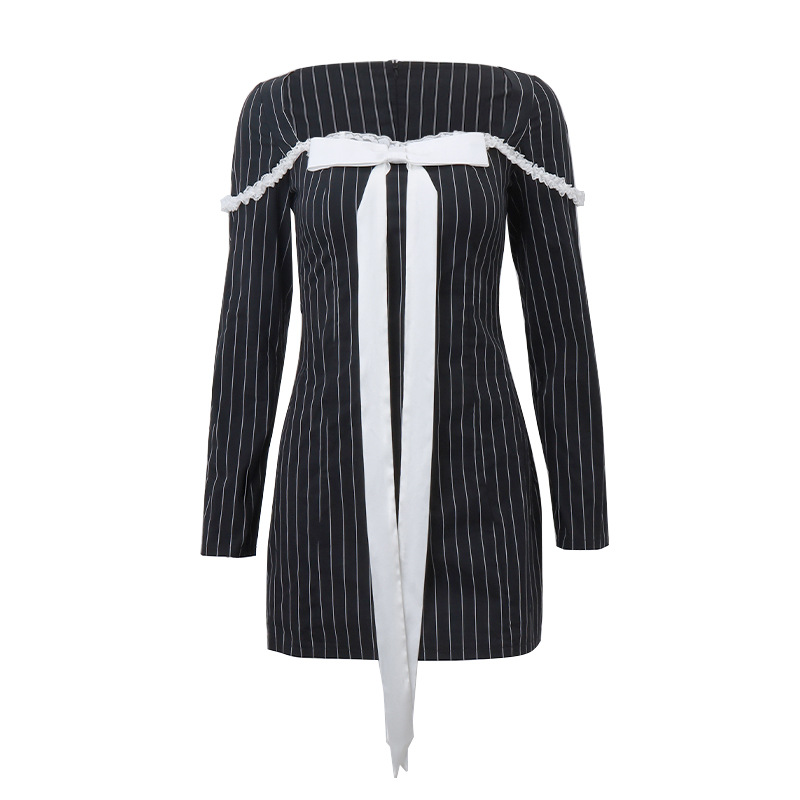 Uveng Uveng Winter New Women's Sexy Pure Desire French Bow Tie Temperament Striped Dress