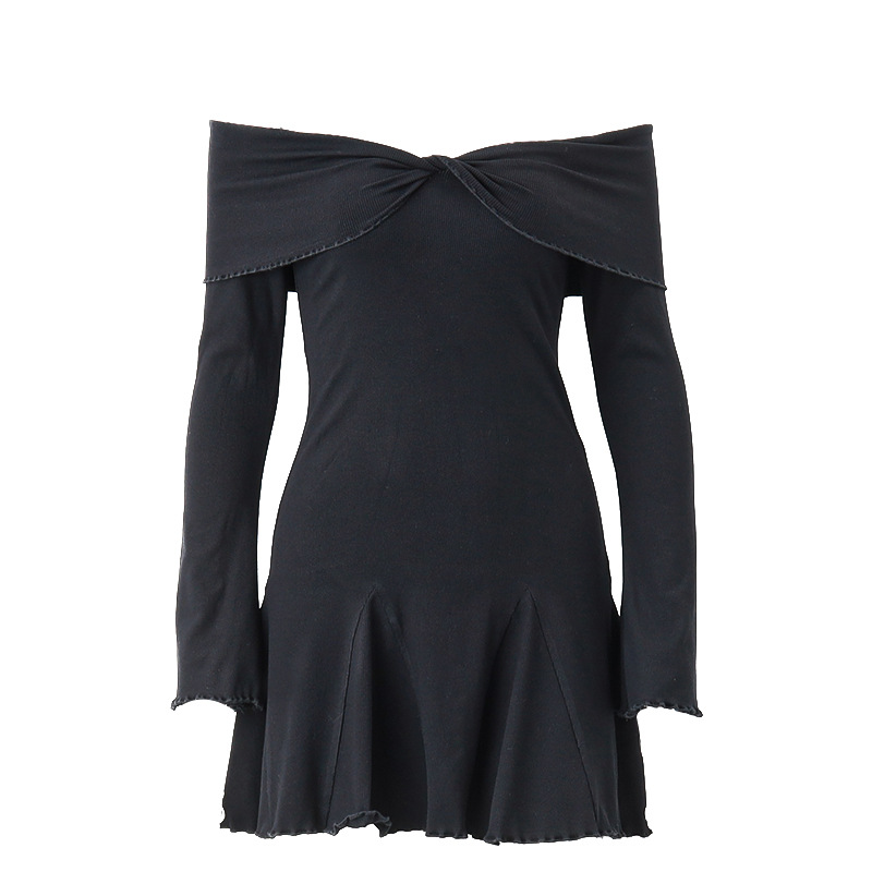 Uveng Uveng Winter New Women's Sweet Sexy Pure Desire Slim Thread One Word Shoulder Long Sleeve Dress