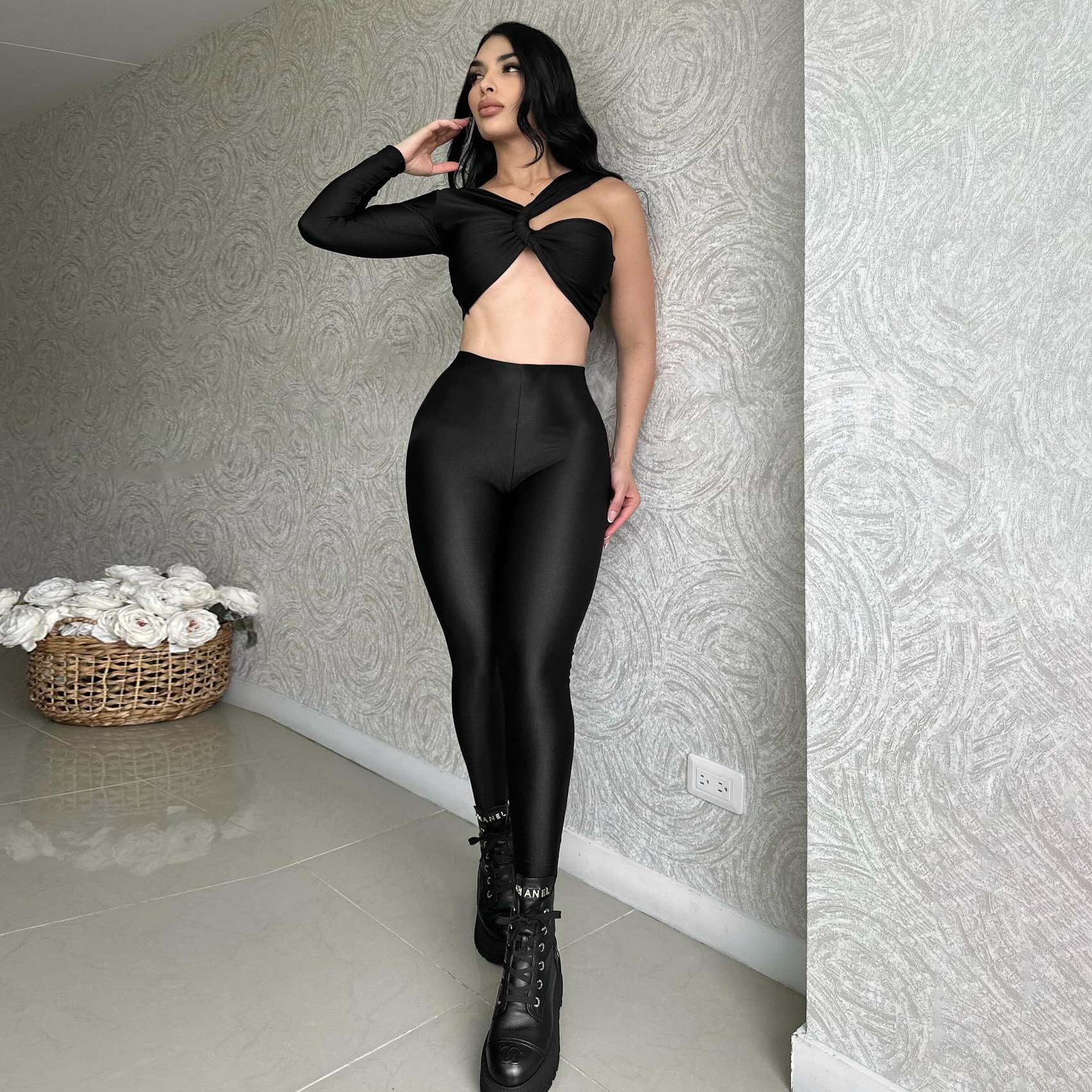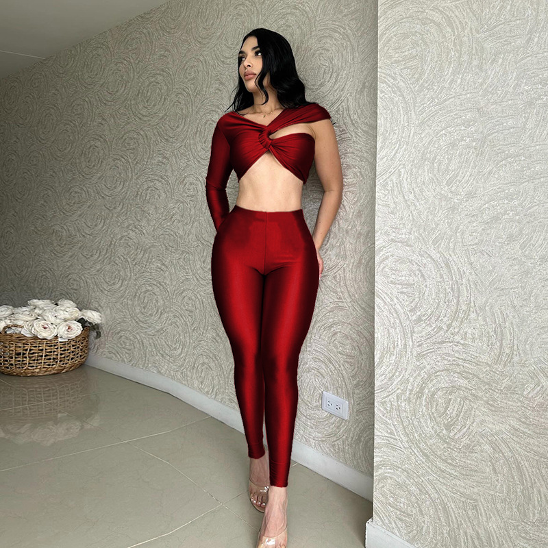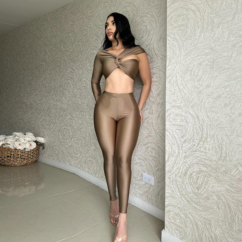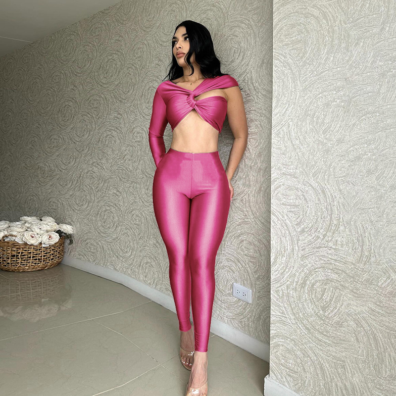 Uveng Uveng With D24ST482 New Sexy Cross-Sleeve Ultra-Sleeved Short Top Trousers Two Sets