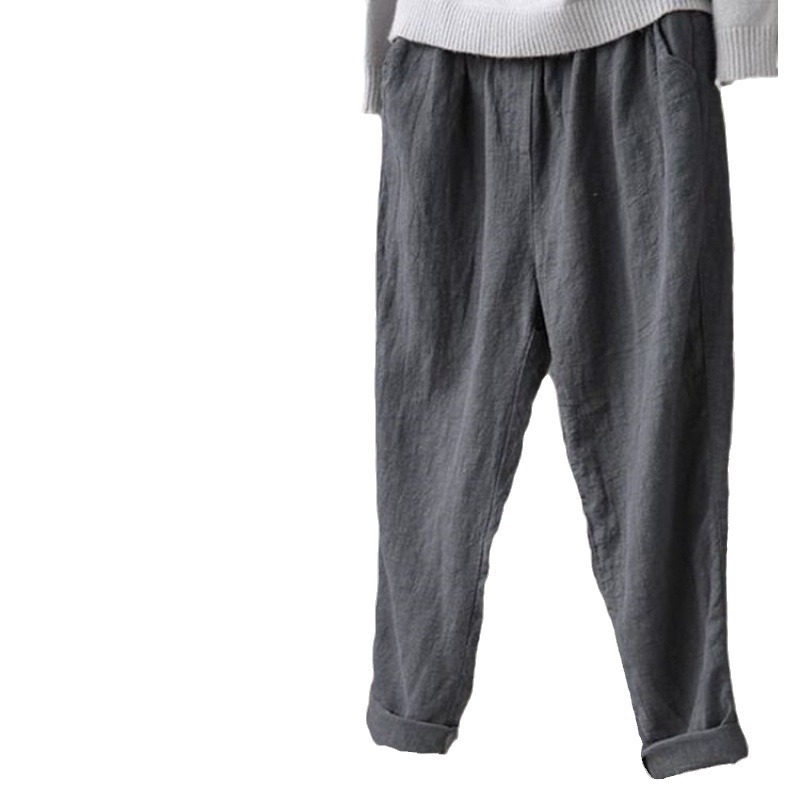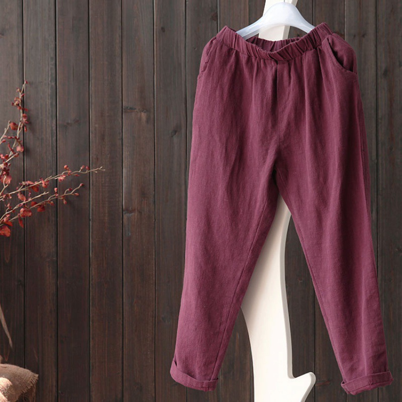 Uveng Uveng Women's Art And Art Van Cotton Linen Women's Trousers New Loose Thin Casual Linen Halon Pants Solid Color